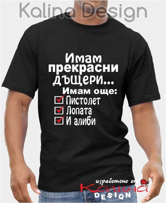 Тениска с надпис - Имам прекрасни ДЪЩЕРИ. Забавен подарък за всеки повод - имен ден, рожден ден, Коледа и Нова година, юбилей и др.