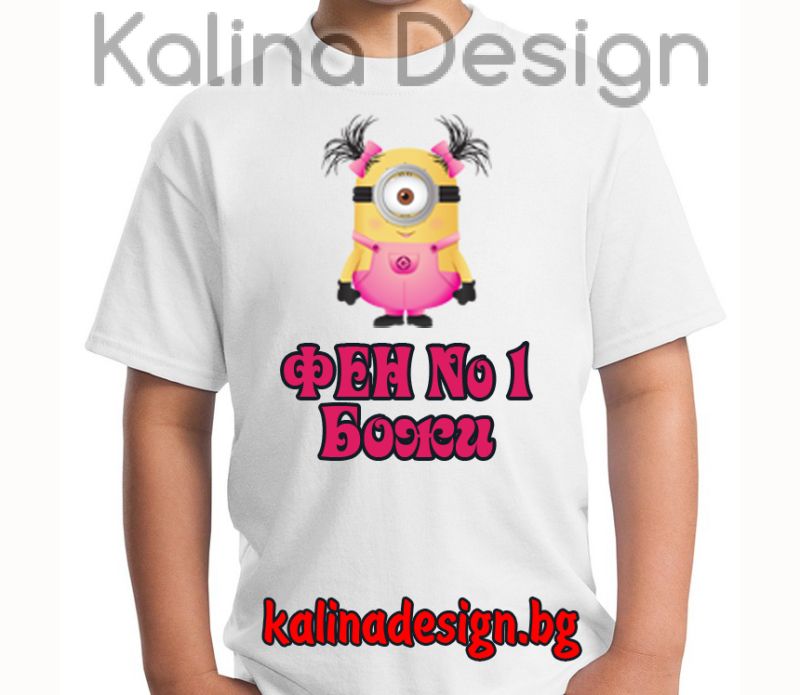 Детска тениска с надпис Фен No 1 Божи! Тениска 100% полиестер, българско производство. Цвят: бял;