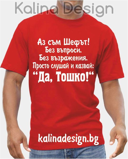 Тениска със забавен надпис - Аз съм Шефът....Да. Тошко! Прекрасен подарък за всеки повод - имен ден Тодоровден, рожден ден, Коледа и Нова година, юбилей, Деня на Бащата и др.