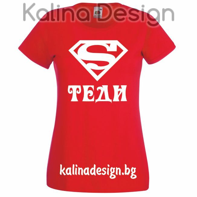 Тениска със забавен надпис -Супер Теди! Прекрасен подарък за всеки повод - имен ден, рожден ден, Коледа и Нова година, юбилей и др. Тениска 100% памук, производител Fruit of the Loom. Щампата е изработена от висококачествено текстилно фолио издръжливо на пране. Дизайн и печат на щампата - Калина Дизайн ЕООД.