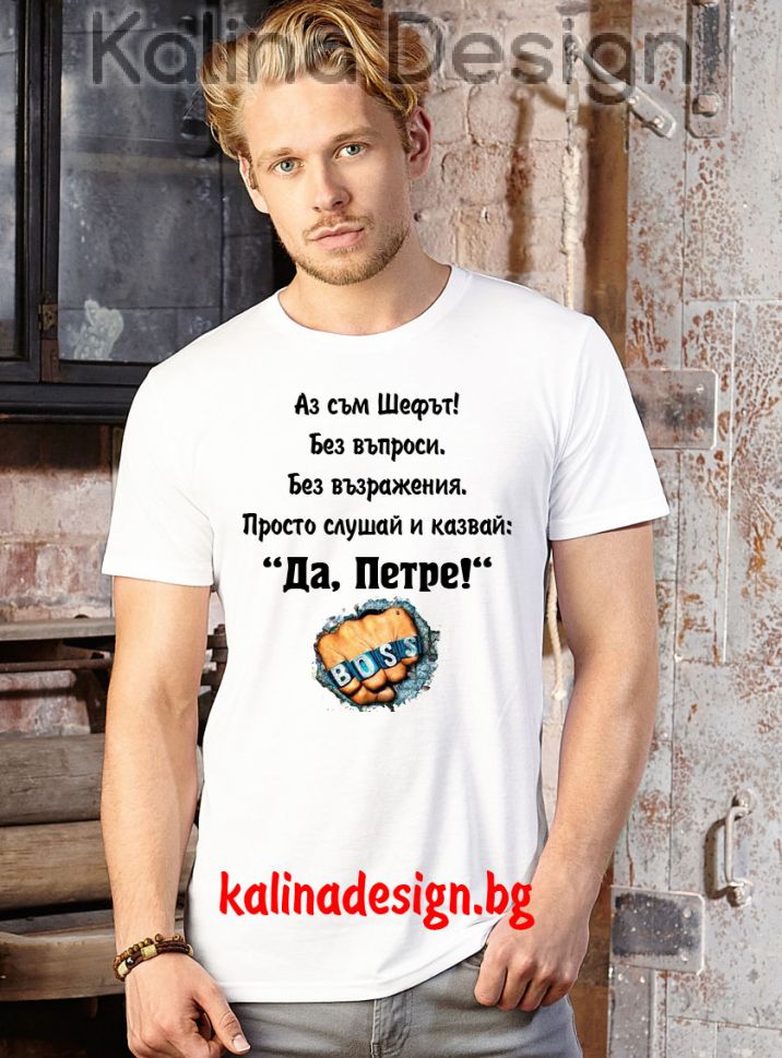 Тениска със забавен надпис- Аз съм Шефът....Да, Петре BOSS! Прекрасен подарък за всеки повод - Петровден, рожден ден, Коледа и Нова година, юбилей, Деня на Бащата и др.
