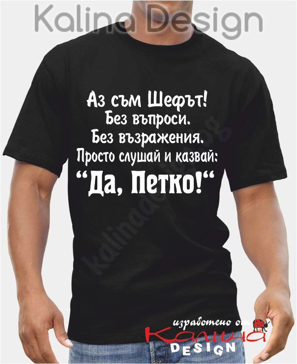Тениска със забавен надпис - Аз съм Шефът....Да, Петко! Прекрасен подарък за всеки повод - имен ден Петковден, рожден ден, Коледа и Нова година, юбилей, Деня на Бащата и др.