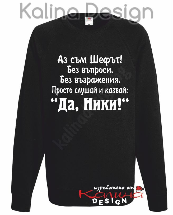 Ватирана блуза Аз съм Шефът....Да, Ники!