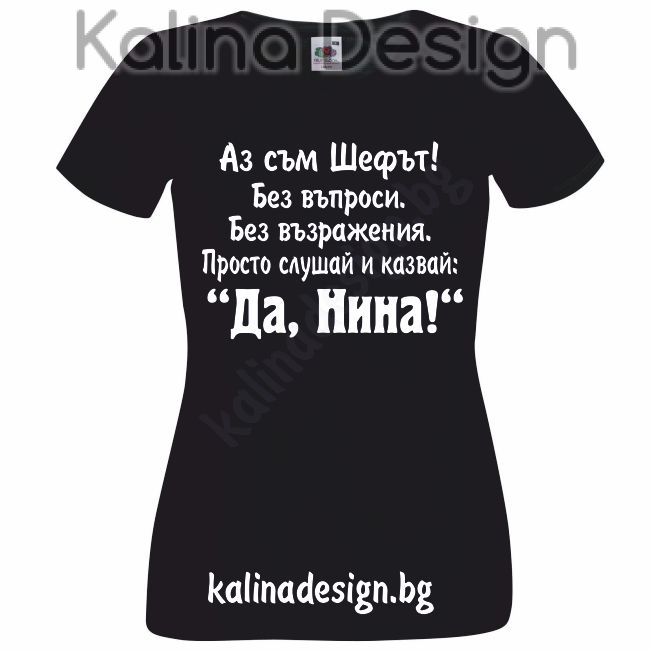 Дамска Тениска с надпис Аз съм Шефът....Да, Нина!