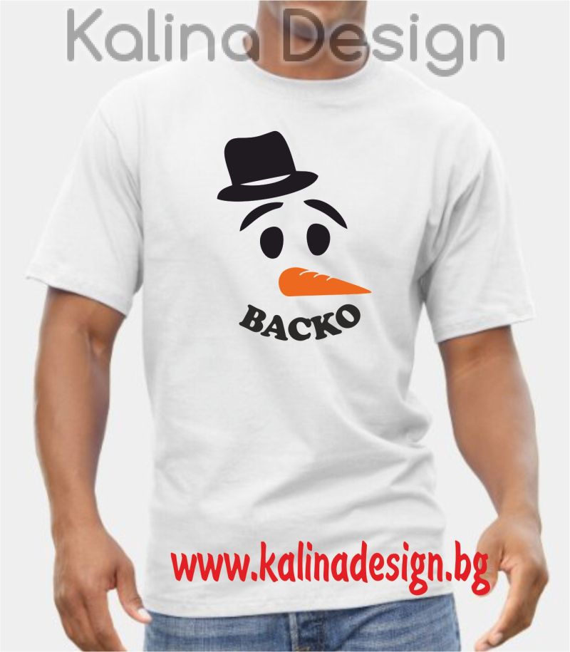 Коледна мъжка тениска с картинка на Снежен човек+име!