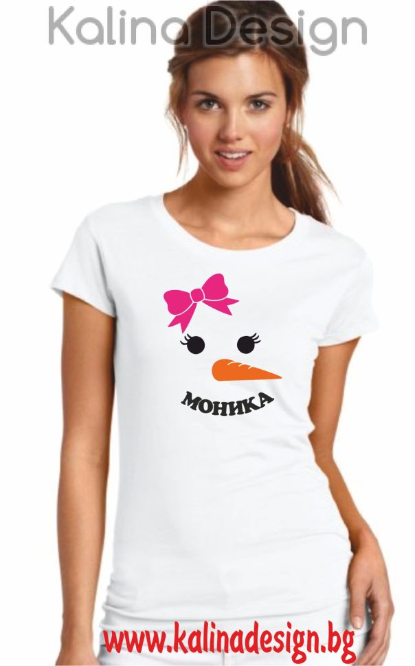 Коледна дамска тениска с картинка на Снежен човек+име!