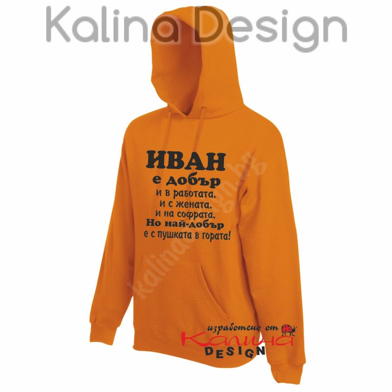 Суитчър със забавен надпис - Иван е добър...., но най-добър е с пушката в гората!