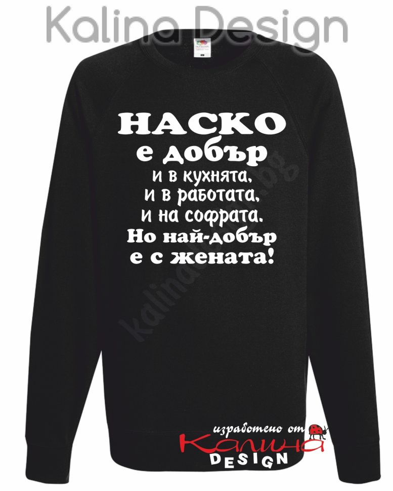 Ватирана блуза със забавен надпис - Наско е добър.....Но най-добър е с жената! Прекрасен подарък за всеки повод - имен ден, Ивановден, рожден ден, Коледа и Нова година, юбилей, Деня на Бащата и др.