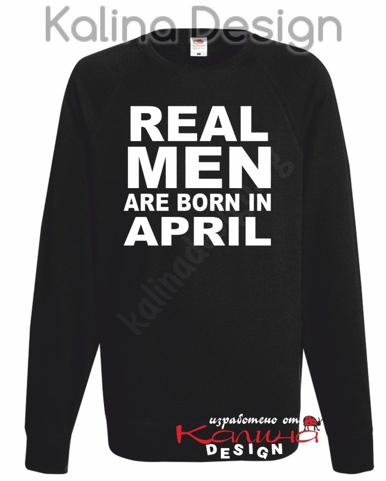 Ватирана блуза със забавен надпис - Real Men are born in APRIL!