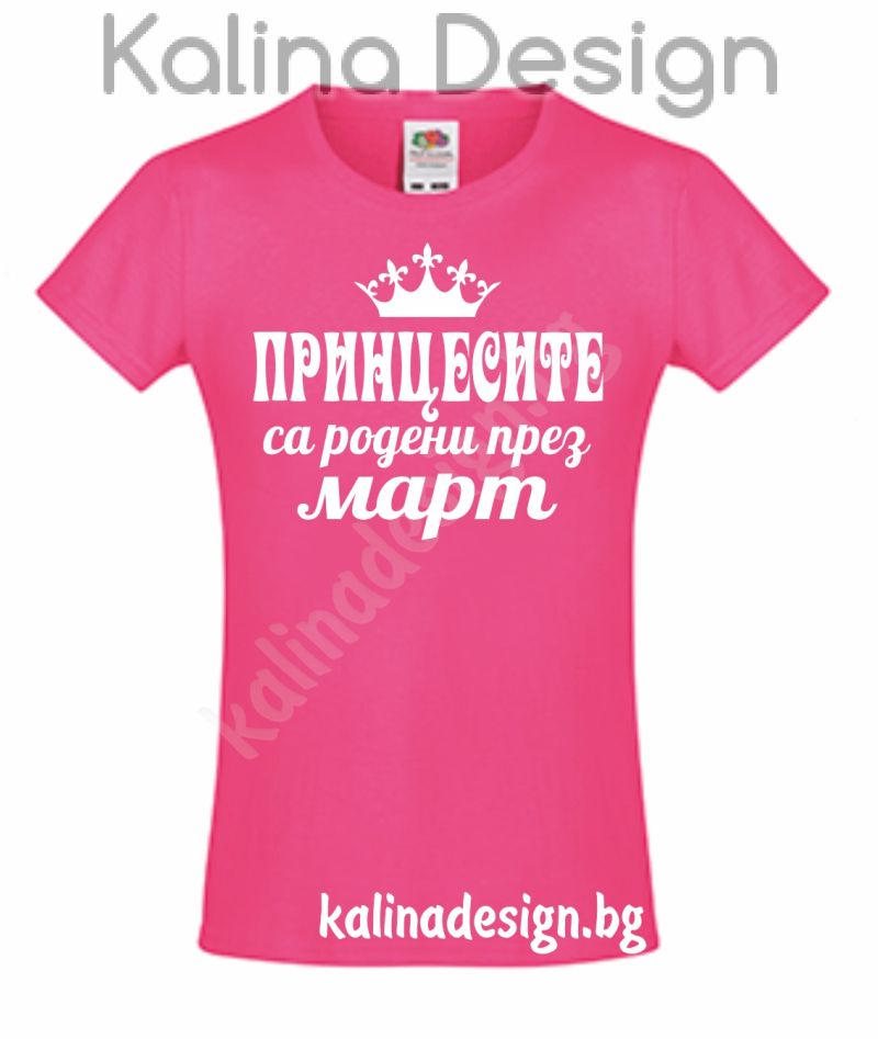 Детска тениска със забавен надпис Принцесите са родени през март! Прекрасен подарък за всеки повод - имен ден, рожден ден, Коледа и Нова година и др.