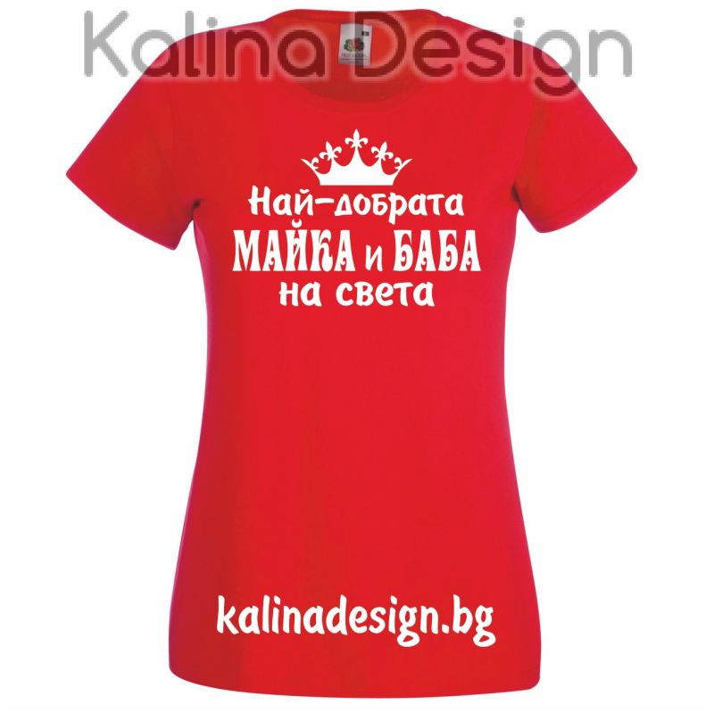 Прекрасен подарък за всеки повод - 8-ми март, имен ден, рожден ден, Коледа и Нова година, юбилей и др. Тениска 100% памук, производител Fruit of the Loom. Щампата е изработена от висококачествено текстилно фолио издръжливо на пране. Дизайн и печат на щампата - Калина Дизайн ЕООД.