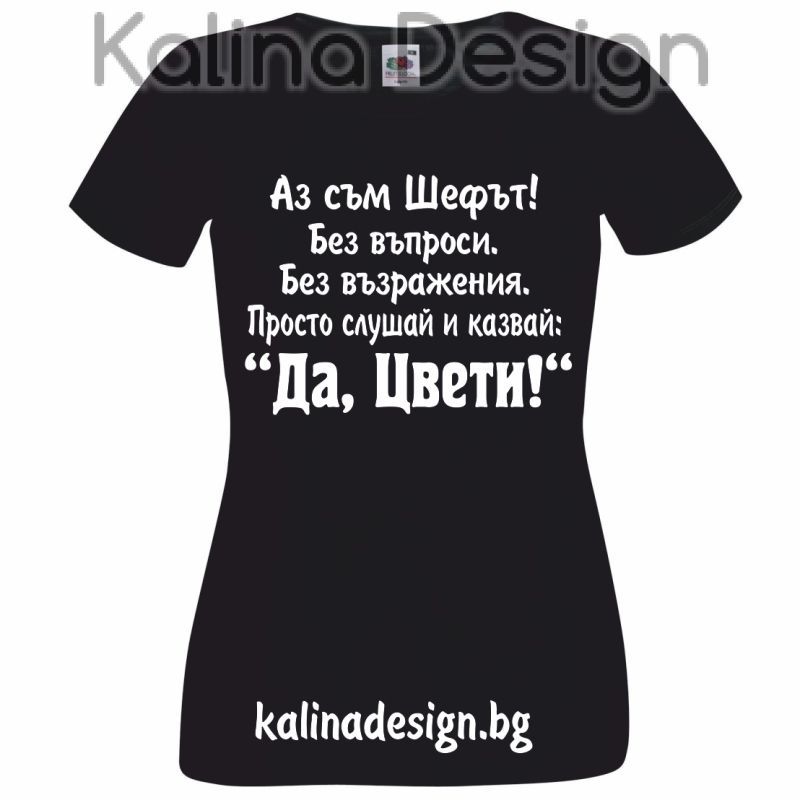 Тениска със забавен надпис - Аз съм Шефът...Да, Цвети!