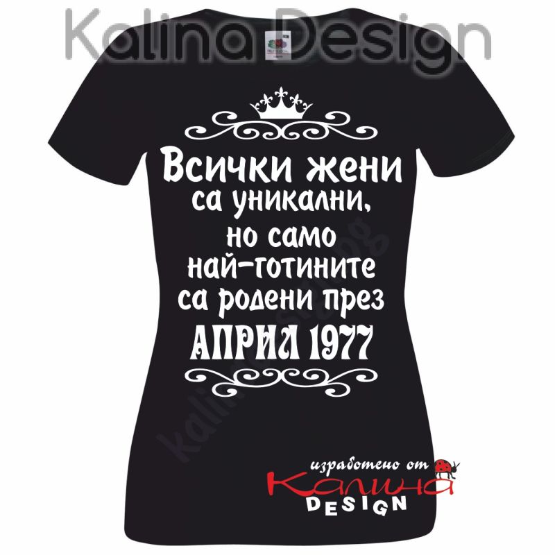 Тениска със забавен надпис - Всички жени са уникални, но само най-готините са родени през АПРИЛ 1977