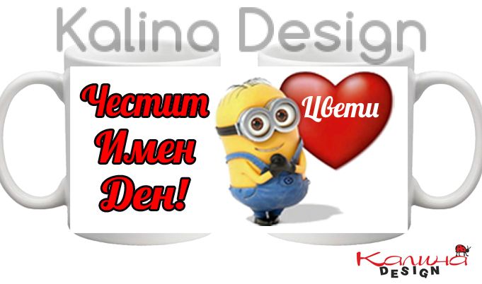 Чаша с надпис - Честит имен ден, Цвети!- прекрасен подарък за Цветница, Коледа, Нова година, рожден ден и други поводи.