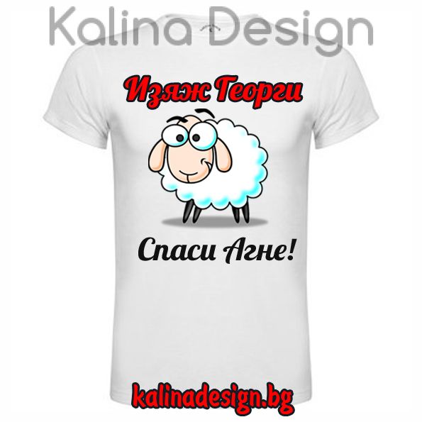 Тениска със забавен надпис - Изяж Георги, спаси агне!