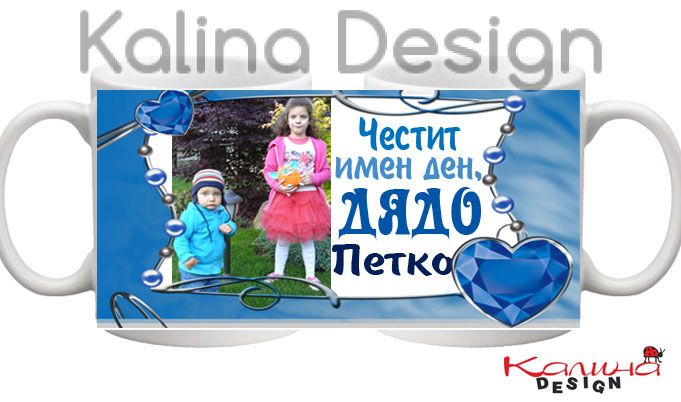 Чаша с надпис Честит имен ден, дядо Петко! - прекрасен подарък за Петковден, Коледа, Нова година, рожден ден и други поводи.