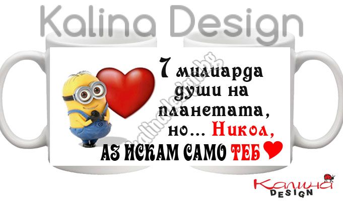 Чаша с надпис 7 милиарда души на планетата, но... НИКОЛ, АЗ ИСКАМ САМО ТЕБ.