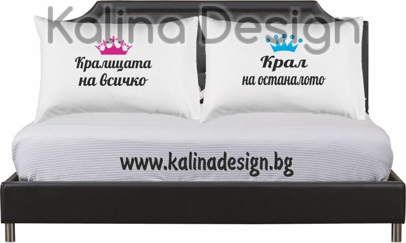 Комплект калъфки за възглавници с надпис Крал Кралица