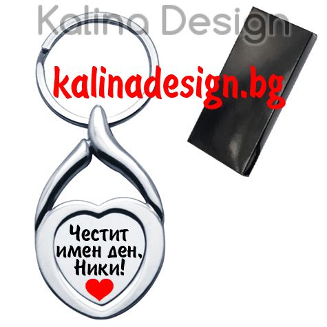 Зарадвай любимият човек с оригинален подарък - Луксозен метален ключодържател с формата на сърце и надпис: Честит имен ден, НИКИ!