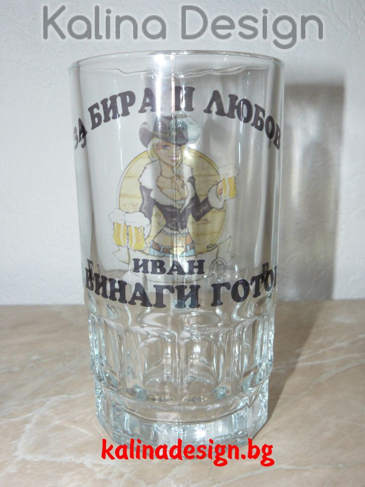 Стъклена халба с надпис- За бира и любов ИВАН е винаги готов!