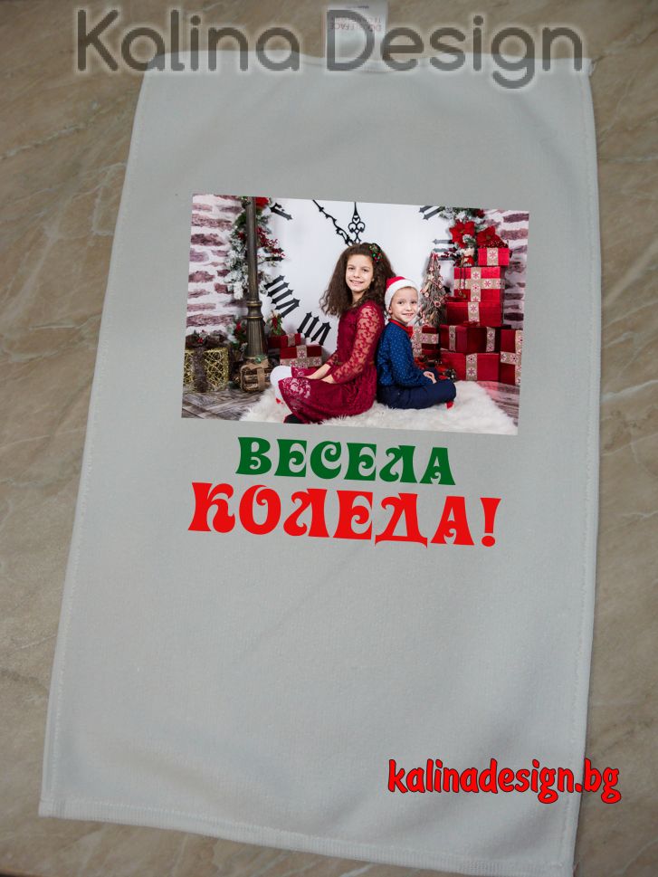 Хавлиена кърпа с надпис Весела Коледа и Снимка!