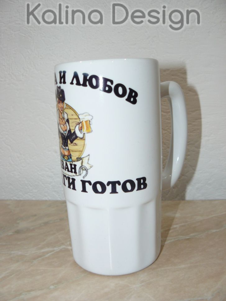 Порцеланова халба с надпис- За бира и любов ИВАН е винаги готов!