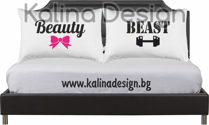 Комплект калъфки за възглавници със забавен надпис - BEAUTY/BEAST