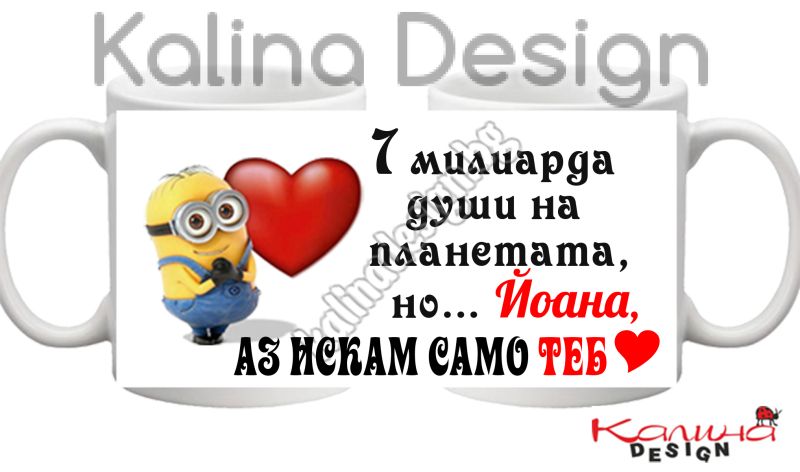 Чаша с надпис 7 милиарда души на планетата, но... ЙОАНА, АЗ ИСКАМ САМО ТЕБ.