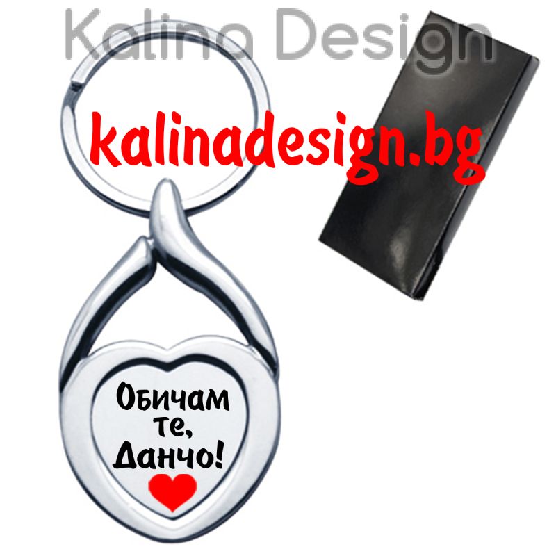 Ключодържател сърце с надпис Обичам те, Данчо!