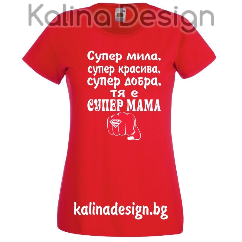 Тениска с надпис Супер мила, супер красива...тя е СУПЕР МАМА
