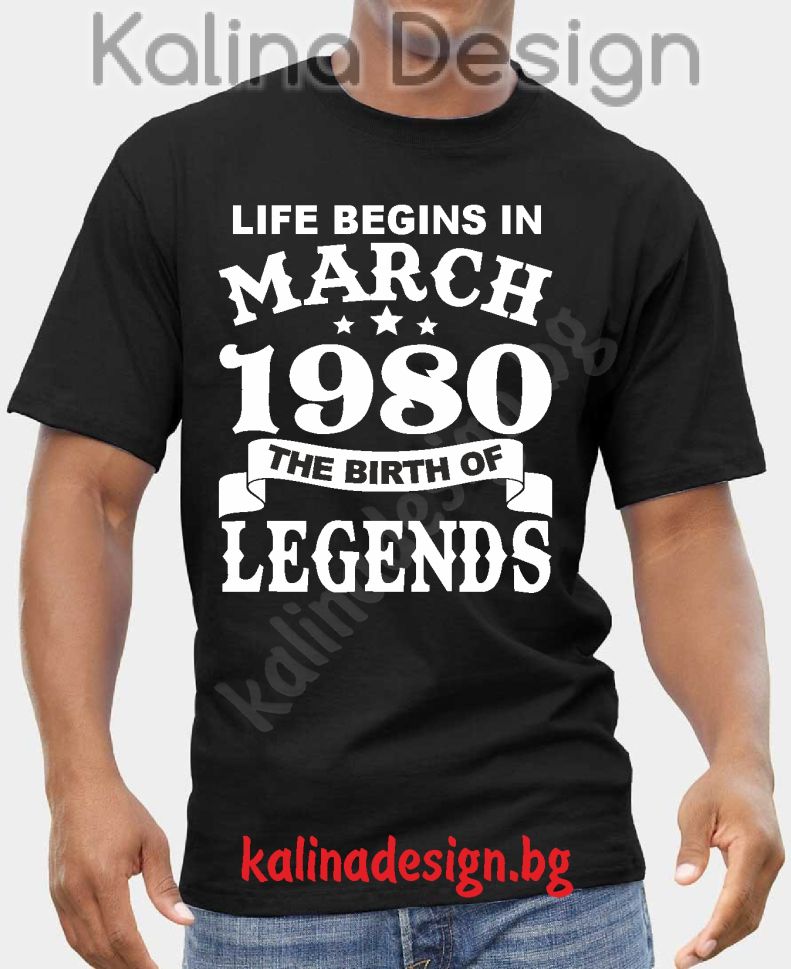 Тениска със забавен надпис - Life begins in MARCH 1980 the birth of LEGENDS!