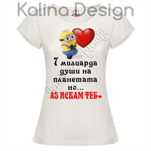 Тениска със забавен надпис - 7 милиарда души на планетата, но АЗ ИСКАМ ТЕБ. Прекрасен подарък за всеки повод - имен ден, рожден ден, Коледа и Нова година, юбилей и др. Тениска 100% полиестер, българско производство. Цвят: бял;
