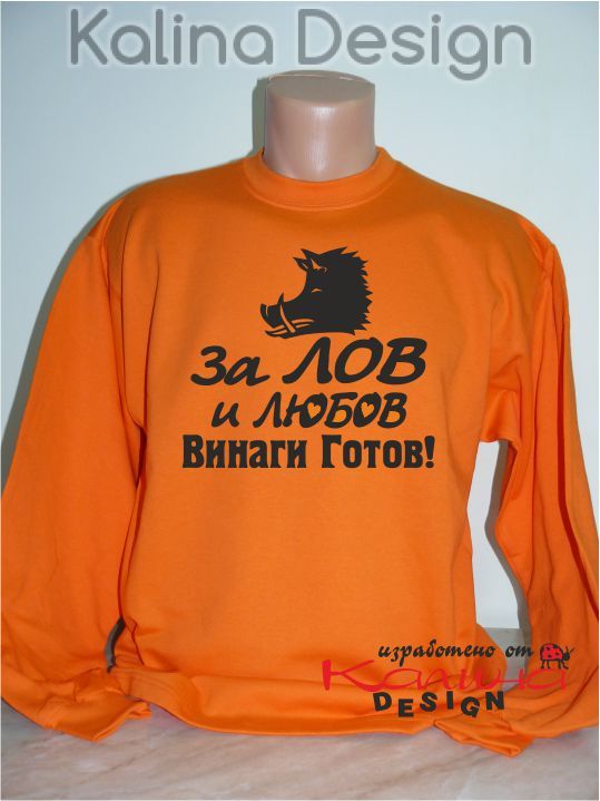 Блуза със забавен надпис - "За Лов и Любов винаги готов".Чудесен подарък за всички ловци с чувство за хумор.
