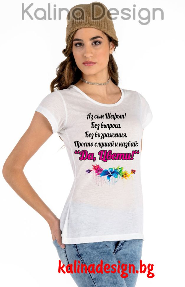 Дамска тениска с надпис Аз съм шефът...Да, Цвети!