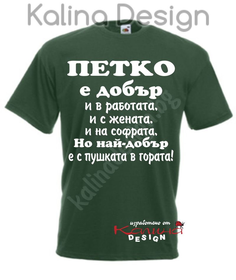 Тениска със забавен надпис - ПЕТКО е добър....., но най-добър е с пушката в гората!