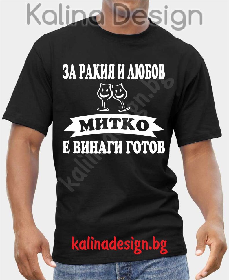 Забавна тениска с надпис За Ракия и Любов МИТКО е винаги готов!