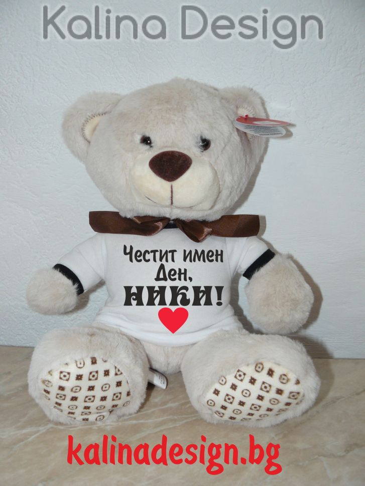 Персонализирано плюшено мече с надпис Честит имен ден, НИКИ!