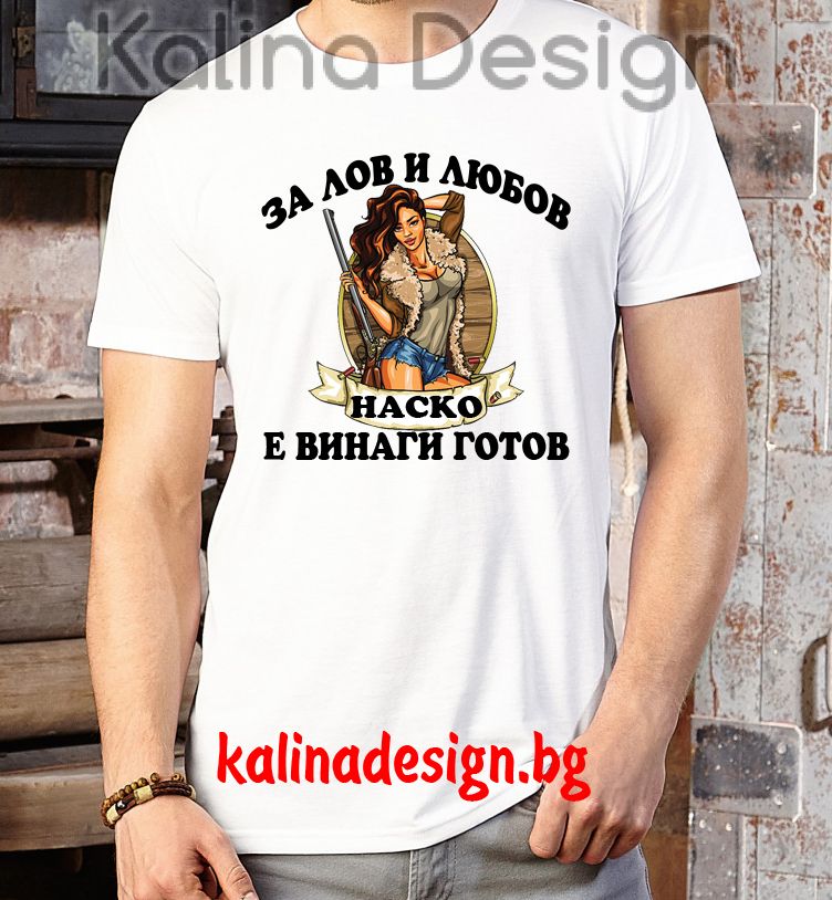 Забавна тениска За ЛОВ и ЛЮБОВ, НАСКО е винаги готов!