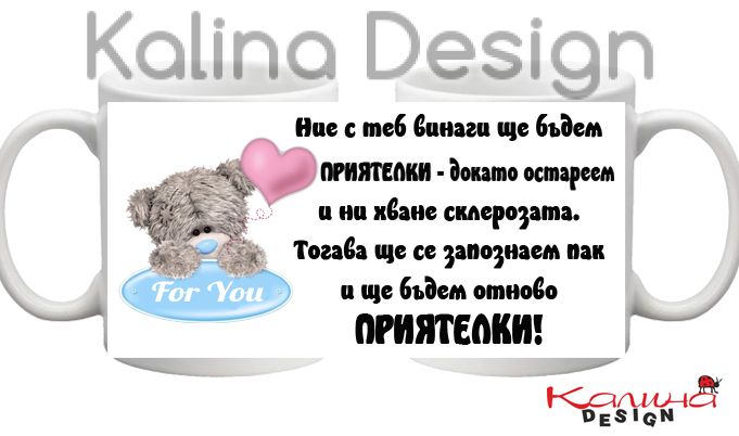 Чаша с надпис За приятелки и мече със сърце!- прекрасен подарък за имен ден, Коледа, рожден ден и други поводи.
