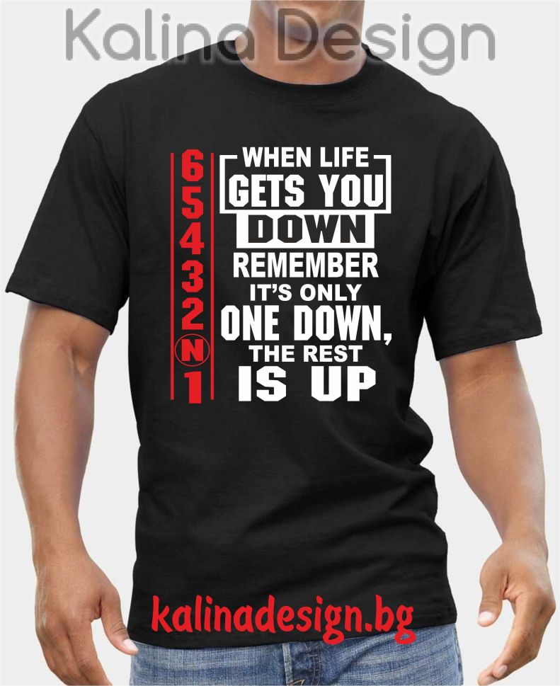 Тениска със забавен надпис When LIFE gets you DOWN, remember it's only one down, the rest is UP!