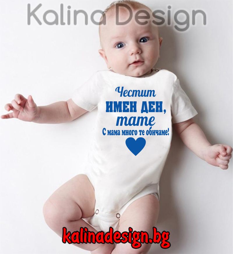Бебешко боди с къс ръкав със забавен надпис Честит имен ден, тате! С мама много те обичаме!