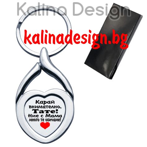 Зарадвай любимият човек с оригинален подарък - Луксозен метален ключодържател с формата на сърце и надпис: Карай внимателно, Тате! Ние с Мама много те обичаме!