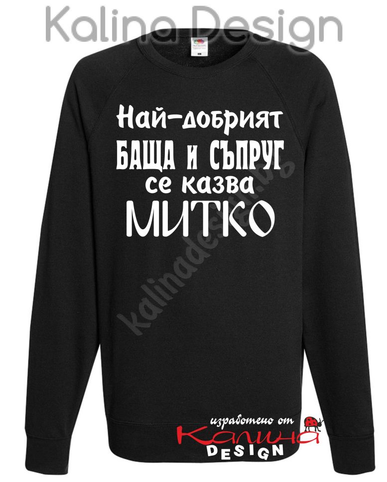 Ватирана блуза със забавен надпис - Най-добрият БАЩА и СЪПРУГ се казва МИТКО!