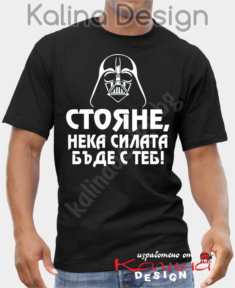 Забавна тениска с надпис "СТОЯНЕ, нека силата бъде с теб!"