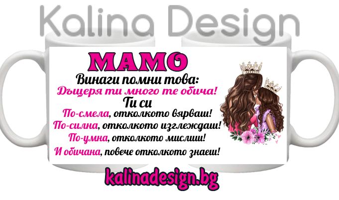 Чаша с надпис МАМО, винаги помни това: Дъщеря ти много те обича