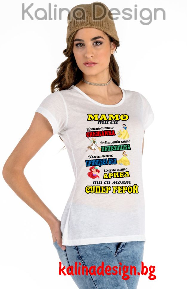 Дамска тениска с надпис МАМО ти си моят СУПЕР ГЕРОЙ