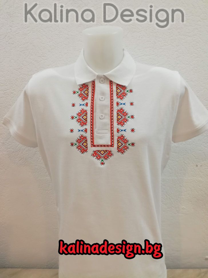 Мъжка фолклорна риза поло пике с оригинална бродерия БЪЛГАРСКА ШЕВИЦА.