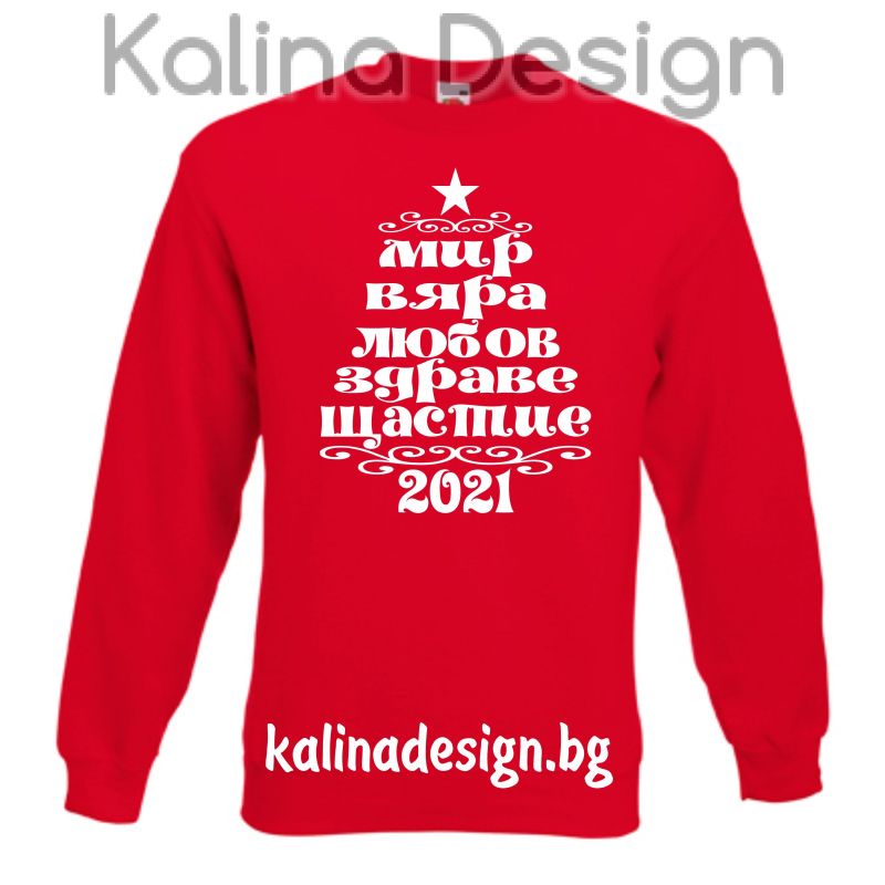 Ватирана блуза с Коледно пожелание- Мир, Вяра, Любов, здраве, Щастие