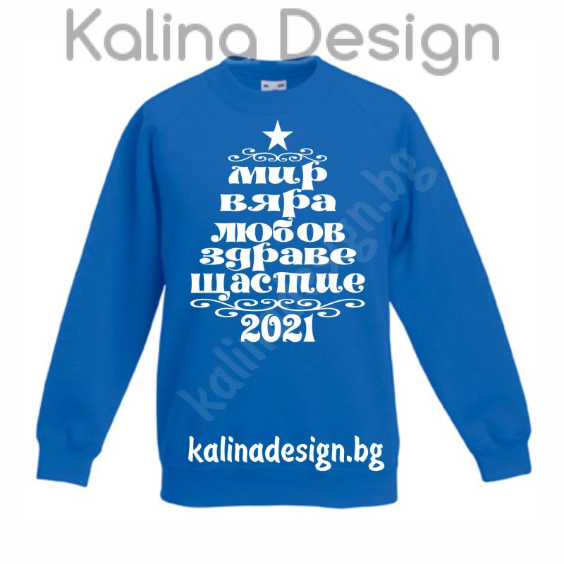 Детска ватирана блуза дълъг ръкав с Коледно пожелание- Мир, Вяра, Любов, Здраве, Щастие