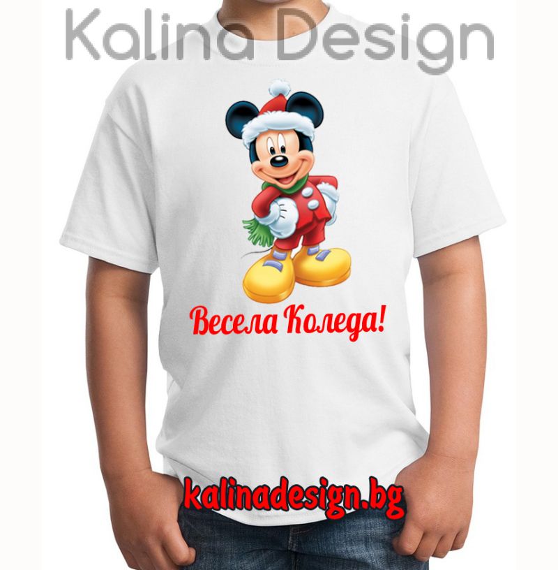 Детска тениска с надпис Весела Коледа+картинка на Мики Маус
